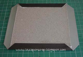 4) Faça as dobras nas abas, cuidando para fazer o vinco perfeito. Utilize uma dobradeira para deixar o vinco perfeito. Cole as abas no papelão, como mostra a foto.